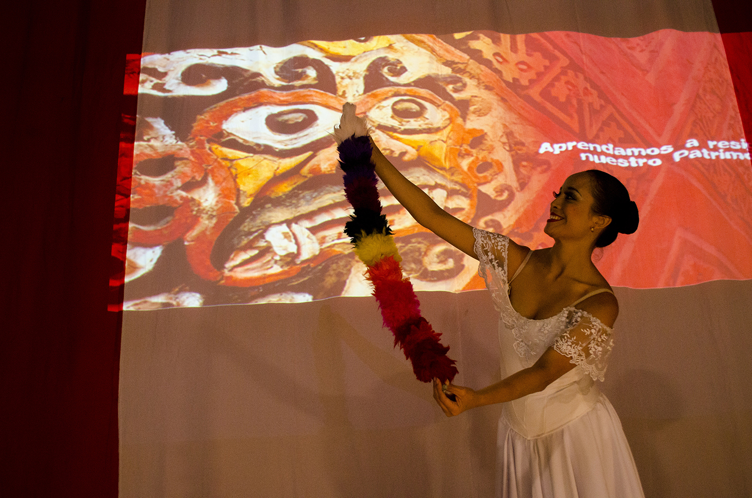 Los bailarines de la Compañía de Ballet de Trujillo adaptaron su vestuario para escenificar un jaguar, la madre patria, cóndores y demás elementos de nuestro país, en paralelo, danzaron ritmos peruanos fusionados con el ballet clásico, generando la alegría del público asistente.