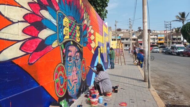 Esta iniciativa, que es desarrollada por el Ministerio de Cultura, en alianza con Unesco, Municipalidad Distrital de Huanchaco y el apoyo de Inca Kola, cuenta con la colaboración de destacados artistas nacionales. Justamente, la inauguración del mural ubicado en el Estadio Municipal de Huanchaco, será mañana martes 29 de noviembre a las 10:00 a.m., con la participación de José Salazar, secretario técnico del Pacto por la Cultura al 2030 de UNESCO; así como de los artistas, vecinos y autoridades del Ministerio de Cultura e Inca Kola.