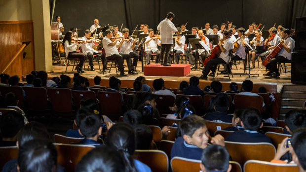 Cerca de 480 escolares de las zonas vulnerables de la provincia de Trujillo, fueron beneficiados a través de funciones didácticas que ofrecieron la Orquesta sinfónica y la Compañía de Ballet de la sede regional de Cultura de La Libertad durante los últimos 4 días de esta semana.