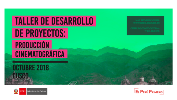 El Ministerio de Cultura del Perú, a través de la Dirección Desconcentrada de Cultura de Cusco (DDC Cusco) y la Dirección del Audiovisual, la Fonografía y los Nuevos Medios (DAFO), convoca al “Taller de Desarrollo de Proyectos: Producción cinematográfica”, a desarrollarse en la ciudad de Cusco del 1 al 4 de octubre de 2018, dirigido a productores cinematográficos residentes en las regiones del país (exceptuando Lima Metropolitana y Callao).