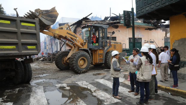 Con el apoyo de maquinaria de la MPT y del Gobierno Regional de La Libertad, así como con el apoyo de personal del ejército, se continúa hasta hoy retirando gran cantidad de escombros de los techos y de todo el segundo piso que se quemó durante este hecho cuyas causas aún no han sido determinadas.