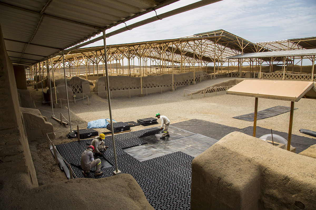 “Tenemos el propósito de ofrecer a Chan Chan lo mejor de la tecnología mundial. Este novedoso sistema que es traído de Estados Unidos permite proteger mejor el sitio arqueológico, y al mismo tiempo, facilitar el acceso de personas en especial de aquellas con discapacidad. Hemos priorizado este sector porque fue siempre muy vulnerable frente a las lluvias”, señaló María Elena Cordova Burga – Directora de la Dirección Desconcentrada de Cultura La Libertad.