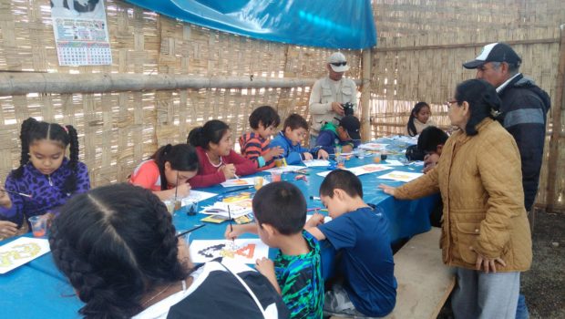 La sesión educativa consistió en un taller de dibujo, en el cual los menores tenían que pintar y colorear imágenes como ardillas, olas, anzumito, pelícanos, entre otros que aparecen en decoraciones en alto relieve en algunos de los conjuntos amurallados como Nik An, también conocido como Tschudi, el único que se encuentra abierto al turismo.