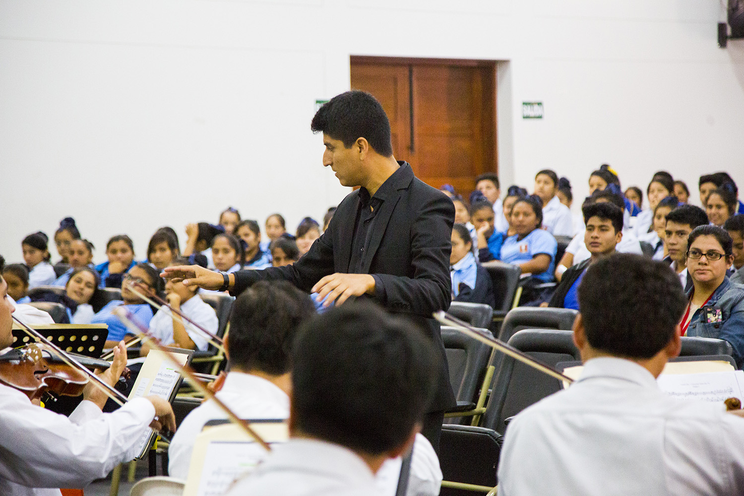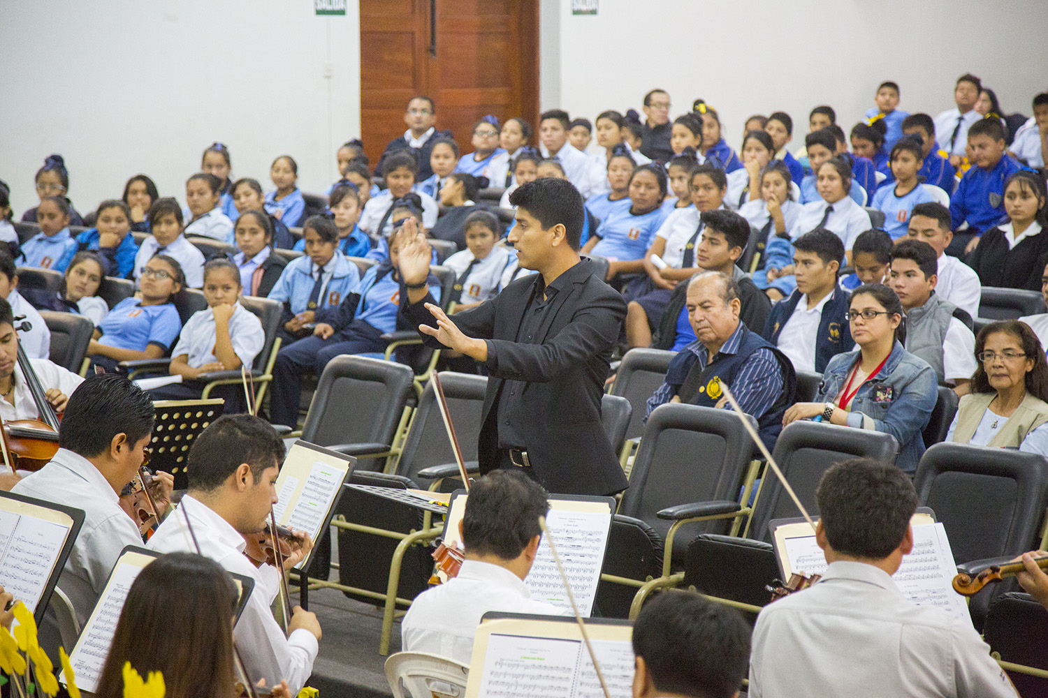 Espartaco Lavalle, director de la Orquesta Sinfónica de Trujillo, sostuvo que durante las sesiones didácticas se imparte una clase de música, y en ella se muestran los instrumentos, para que los alumnos puedan reconocerlos e identificarlos en otras piezas musicales.