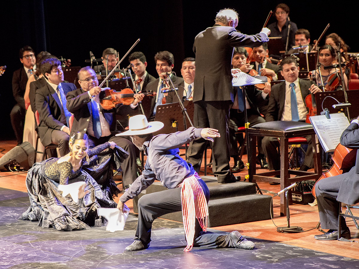La Orquesta Sinfónica de Trujillo estuvo dirigida por el maestro Oscar Palomino Pastor, quien fue el encargado de hacer pasar a los asistentes una noche inolvidable llena de música, ritmos peruanos, alegría y color.