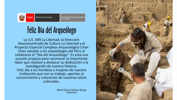 La Dirección Desconcentrada de Cultura La Libertad y el Proyecto Especial Complejo Arqueológico Chan Chan saludan a los arqueólogos del Perú al celebrarse el “Día del Arqueólogo”. Es esta una ocasión propicia para reconocer la importante labor que realizan y destacar su dedicación a la investigación de nuestra historia, destacó María Elena Córdova Burga.