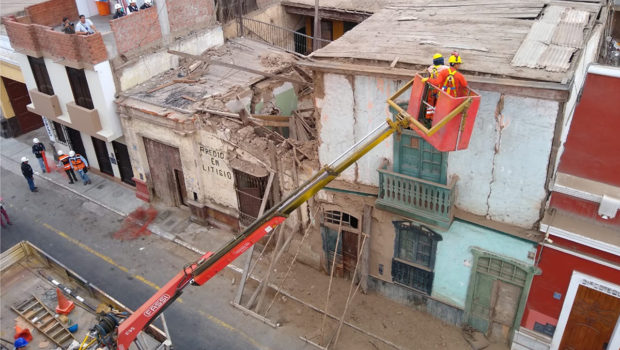 También se está apuntalando el primer piso del inmueble ubicado en el jirón San Martin 773 y el primer y segundo nivel de la casona signada con número 779 y 783, todo con fines de evitar su colapso durante el proceso de desmontaje que se estima durará en promedio diez días.