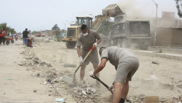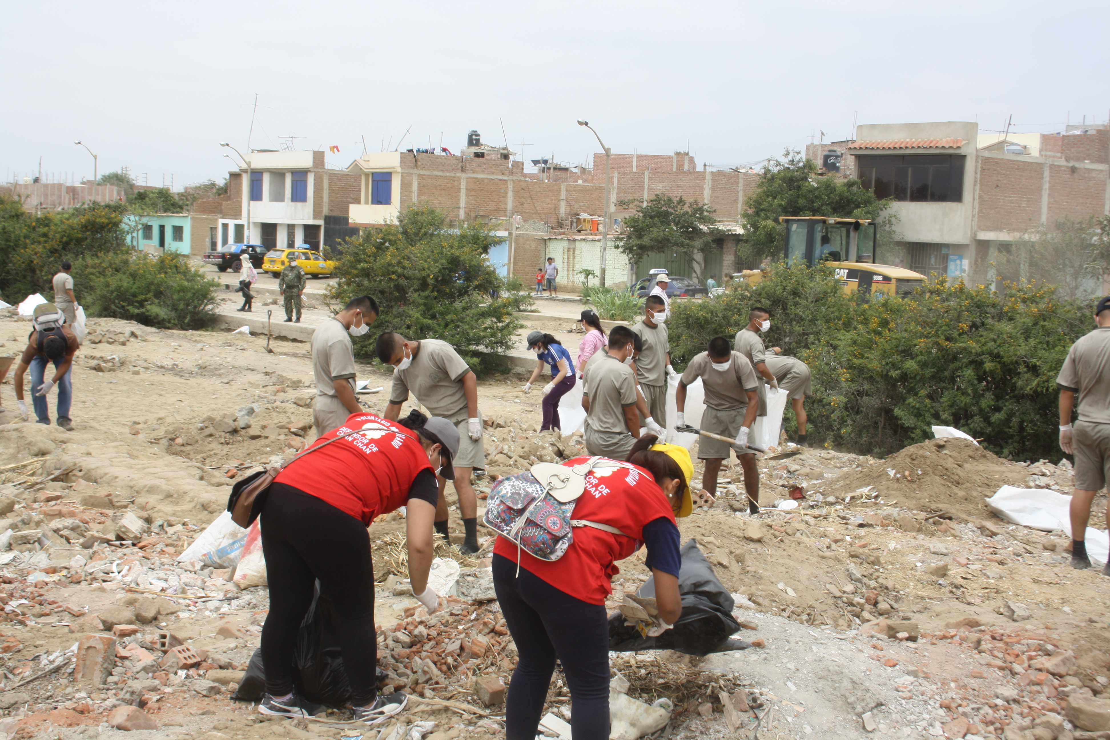 Durante casi una semana de trabajo se logró erradicar 792 m3 de basura y desmonte acumulada en la zona conocida como Pampas de Santa María, sector que colinda con los distritos de La Esperanza y Huanchaco.