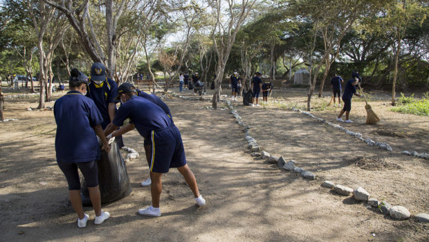 Participaron más de 80 personas, entre trabajadores del Proyecto Especial Chan Chan y voluntarios de la Academia Pre Militar Policial Los Audaces.