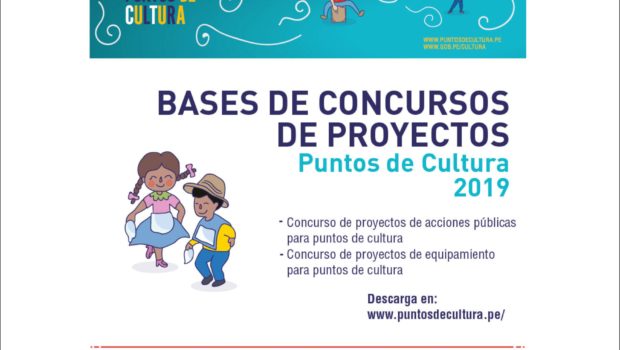 En el marco de la Ley N°30487 “Ley de Promoción de Puntos de Cultura”, y su reglamentación en el presente año, el Ministerio de Cultura publica las Bases de los Concursos de Proyectos para Puntos de Cultura 2019, documentos donde se detallan la información necesaria para postular.