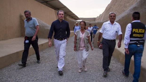 Trujillo. El ministro de Cultura, Salvador del Solar participó junto al presidente de la República Pedro Pablo Kuczynski de la segunda reunión de Gobernadores de la Mancomunidad Regional Macro Región Nor Oriente que se desarrolló en la Plaza Principal del conjunto amurallado Nik An del Complejo Arqueológico Chan Chan, sitio arqueológico incluido desde 1986 en la Lista de Patrimonio Mundial de la Unesco.