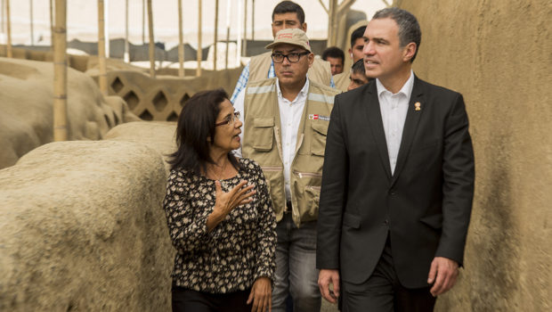 El ministro de Cultura Salvador Del Solar en compañía del viceministro de Patrimonio Cultural e Industrias Culturales Jorge Ernesto Arrunátegui Gadea y de la directora de la Dirección Desconcentrada de Cultura de La Libertad, María Elena Córdova Burga recorrieron el Conjunto Amurallado Nik An del Complejo Arqueológico Chan Chan. La máxima autoridad del sector Cultura resaltó la importancia de continuar con la política de prevención en sitios considerados como Patrimonio Cultural.