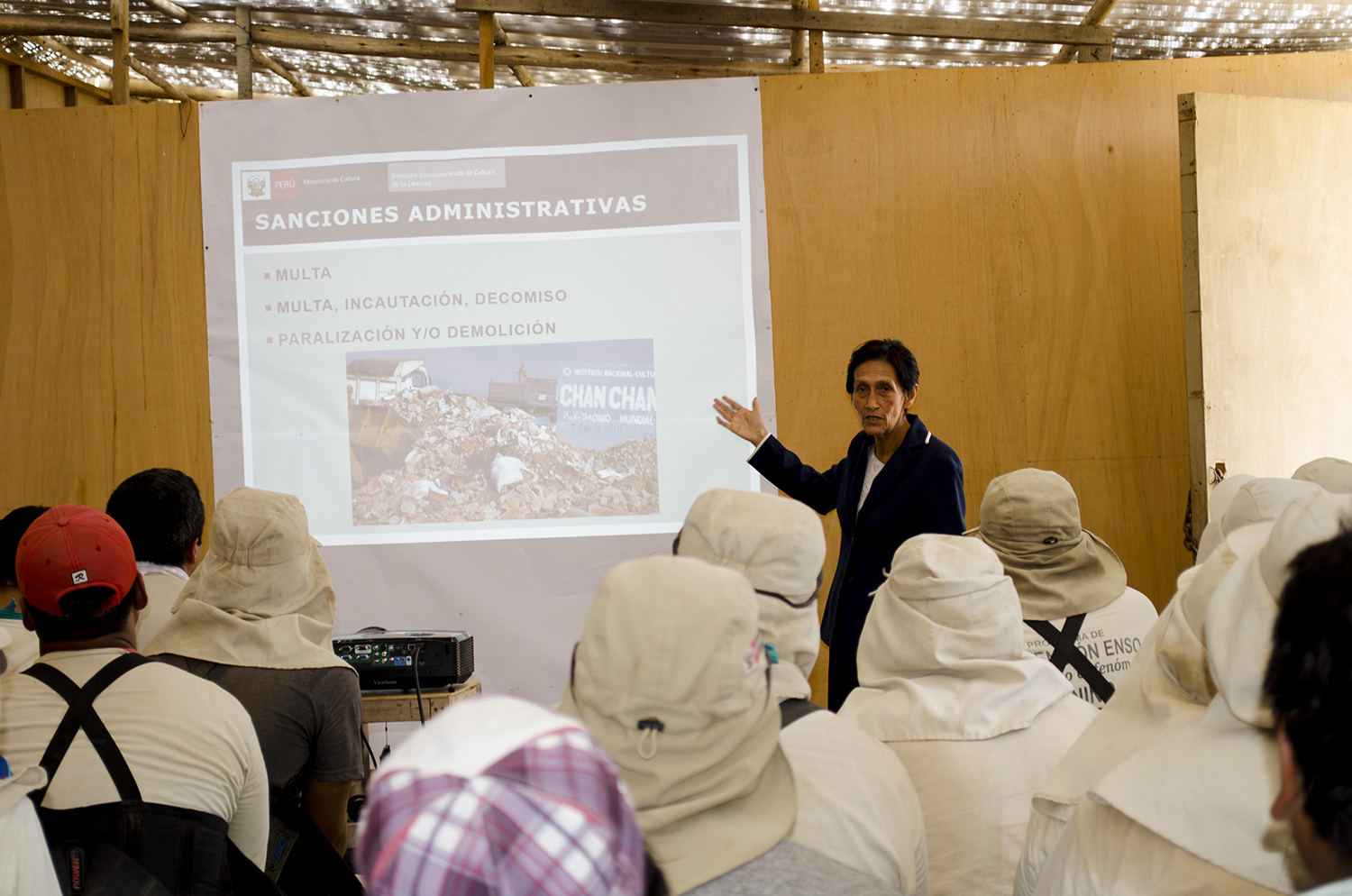 La Dirección Desconcentrada de Cultura La Libertad organizó la charla denominada Marco Legal sobre Patrimonio Cultural de la Nación y Sanciones dirigida a los colaboradores del proyecto de conservación del Conjunto Amurallado Xllangchic – An (ex palacio Uhle).