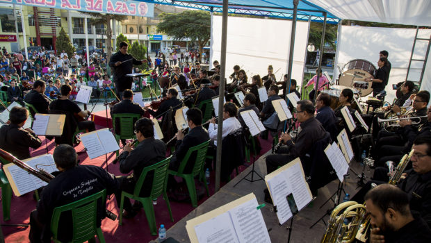 Sobre el escenario el maestro Espartaco La Valle Terry explicó detalladamente cada uno de los instrumentos que conforman una orquesta sinfónica. Posteriormente, interpretaron temas de fácil evocación como música clásica y contemporánea de nuestro país y del mundo, entre ellas el huayno Valicha, la zarzuela peruana, El Cóndor Pasa y el soundtrack La Pantera Rosa elaborada por Henry Mancini para la película del mismo nombre.