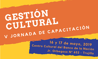 El Punto de Cultura del Ministerio de Cultura, Asociación de Gestores de Arte y Cultura – Perú Cultural de la ciudad de Trujillo, realizará este jueves 16 y viernes 17 de mayo, la V Jornada de Capacitación en Gestión Cultural. El evento está dirigido a artistas, comunicadores sociales y personas vinculas a la gestión cultural pública y privada.