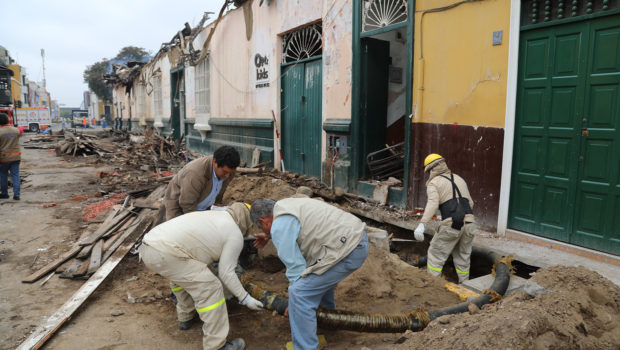 En las últimas horas de la tarde del viernes, al detectarse acumulación de agua al borde de los cimientos de los inmuebles de valor patrimonial colindantes en el jirón Gamarra, acudieron con una bomba de agua para colaborar con el retiro del líquido que ponía en riesgo las estructuras.