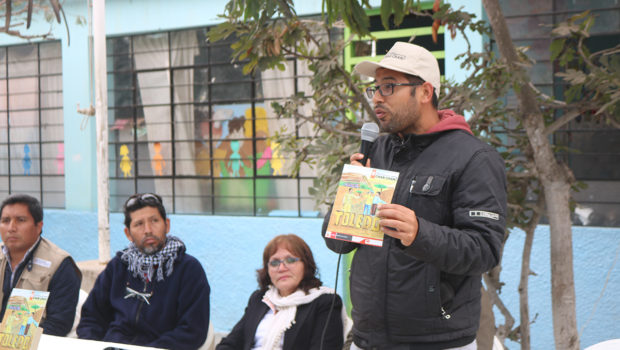 La presentación del boletín estuvo a cargo de los promotores sociales Elder Abanto Chávez y Susana Honores Barrera, responsables del componente de Sensibilización y Difusión del proyecto Recuperación de la Huaca Toledo del Complejo Arqueológico Chan Chan.