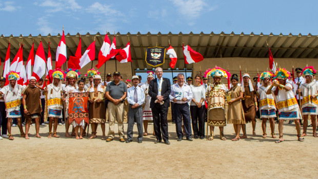 En el marco de esta visita histórica, la directora de la Dirección Desconcentrada de Cultura La Libertad y del Proyecto Especial Complejo Arqueológico Chan Chan, María Elena Córdova Burga organizó un recibimiento especial en Chan Chan.