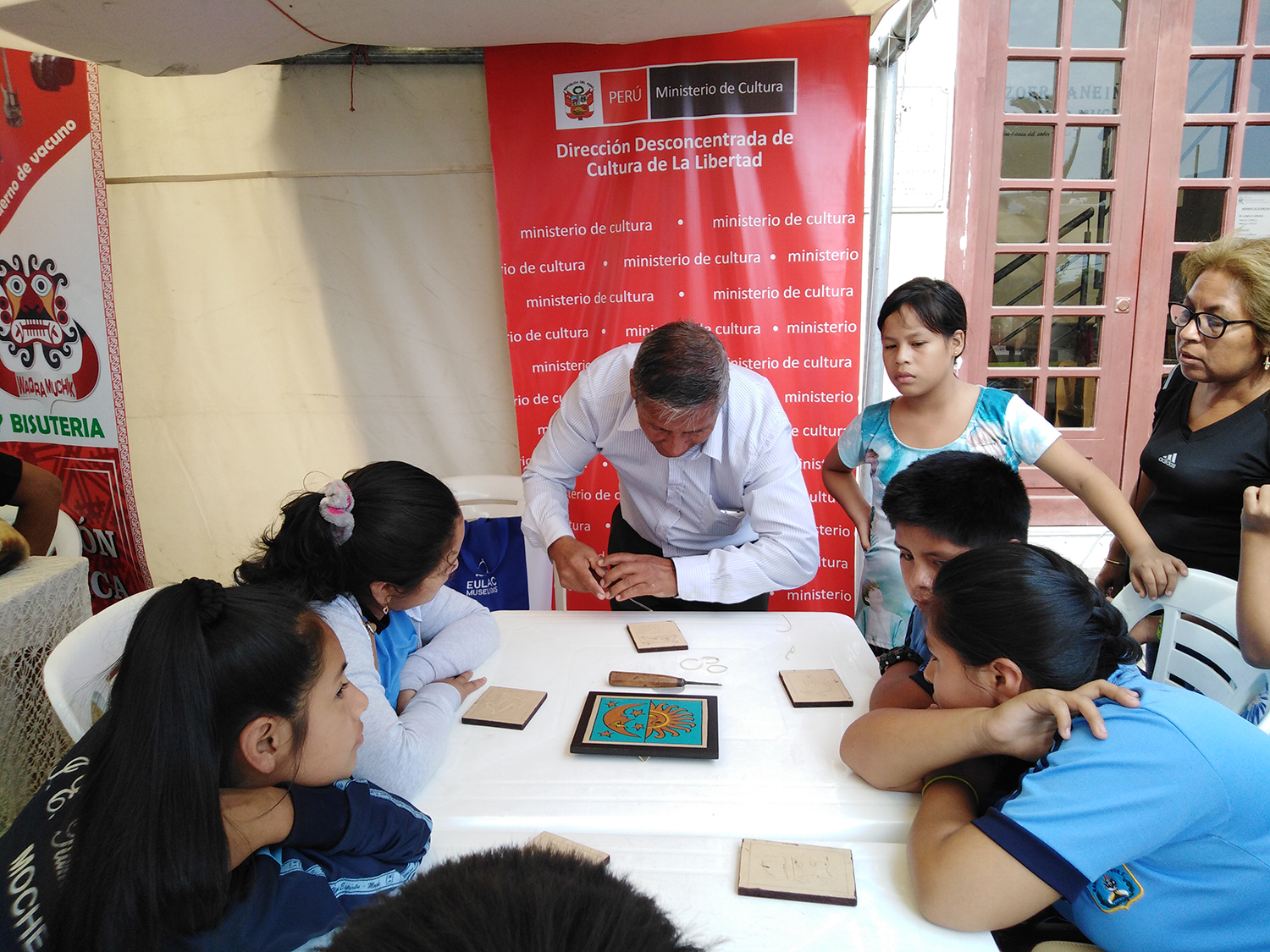 La Dirección Desconcentrada de Cultura de La Libertad a través del área funcional de Patrimonio Cultural Inmaterial participó en la expo feria artesanal organizado por la Municipalidad distrital de Moche con una actividad múltiple de sensibilización en temas de Patrimonio Cultural Inmaterial de nuestra región, durante la celebración de la Semana Santa en Moche, declarada Patrimonio Cultural Inmaterial de la Nación.