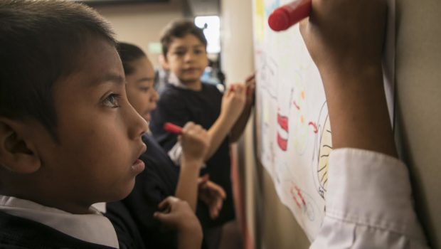 El taller fue dirigido por el profesor venezolano nacionalizado mexicano Ciro Caravallo, quien a través del dibujo va identificando cuáles son los elementos con los que los escolares se identifican o hacen referencia.