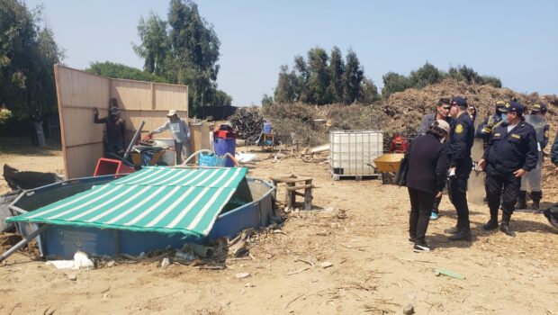 En ese lugar, se pudo observar que se había instalado un cerco de palos con polietileno que encerraba otras instalaciones precarias, las cuales eran utilizadas para procesar dicho abono.