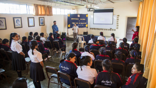 La Dirección Desconcentrada de Cultura de La Libertad a través del área funcional de Defensa del Patrimonio Cultural ofreció una charla de sensibilización a casi un centenar de escolares de la Institución Educativa Maria Negrón Ugarte.