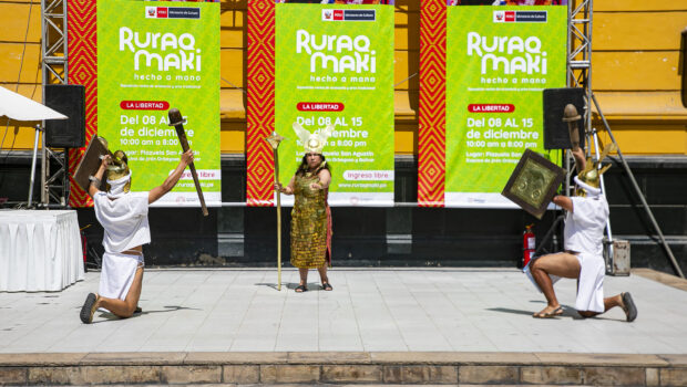 Con una escenificación de la Dama de Cao, importante dignataria de la época mochica, a cargo de la agrupación trujillana “Máscara de barro”, se realizó la clausura de la exitosa primera edición macro regional de ‘Ruraq maki, hecho a mano’.